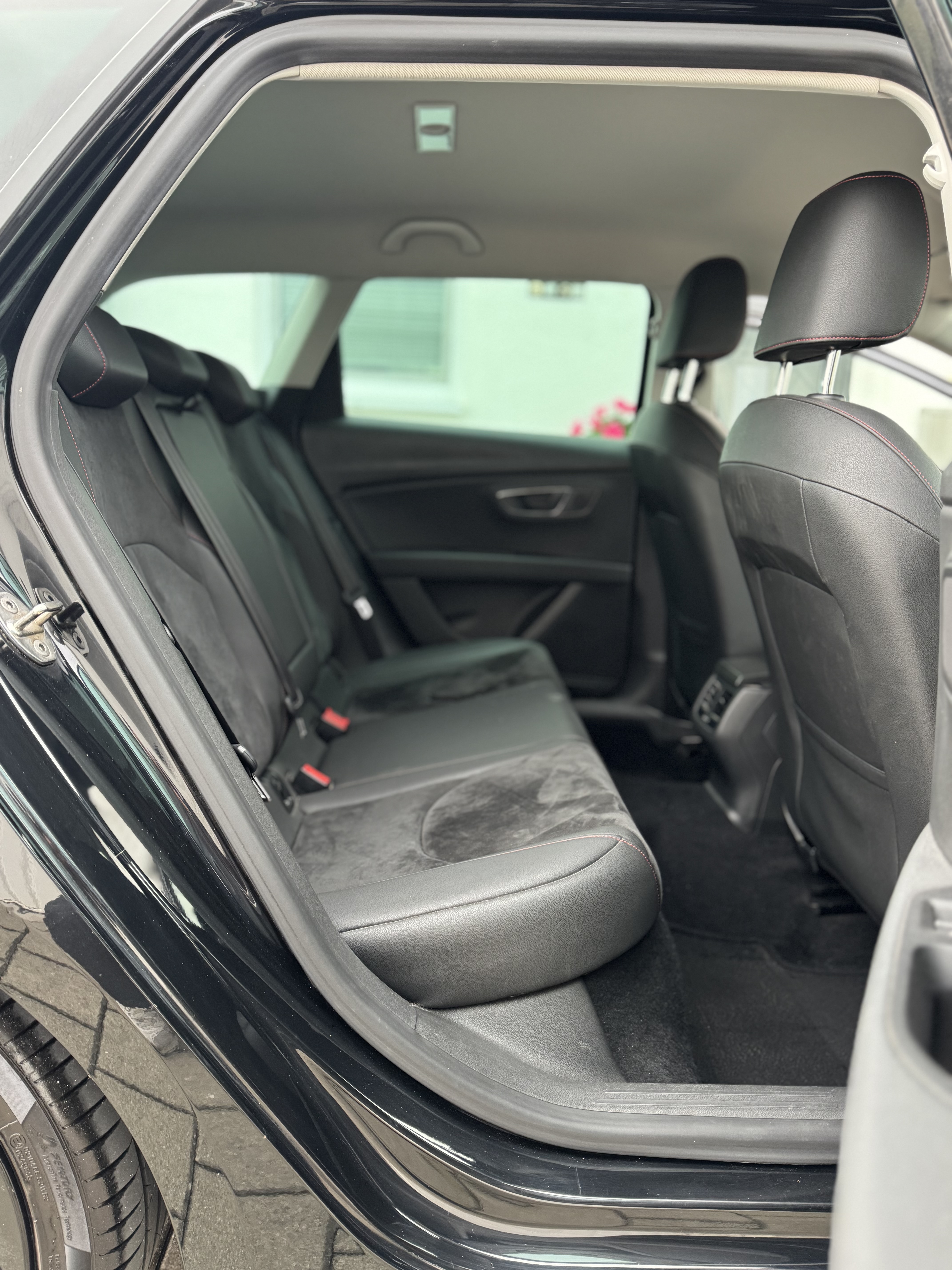 Fahrprofilauswahl (SEAT Drive Profile), Fensterheber elektrisch hinten, Gepäckraumabdeckung / Rollo, Handschuhfach beleuchtet, Heckleuchten LED, Innenausstattung: Chrom-Applikationen, Isofix-Aufnahmen für Kindersitz, Karosserie: 5-türig, Klimaanlage Climatronic 2-Zonen, Knieairbag Fahrerseite, Kofferraumbeleuchtung, Kopf-Airbag-System, Kopfstützen hinten (3-fach), Kopfstützen vorn verstellbar, Laderaumboden variabel und herausnehmbar, Lendenwirbelstütze Sitz vorn links, verstellbar, Lendenwirbelstütze Sitz vorn rechts, verstellbar, Lenkrad (Sport/Leder), Mittelarmlehne hinten, Motor 2,0 Ltr. – 110 kW TDI, Reifenkontroll-Anzeige, Rücksitzlehne geteilt/klappbar (1/3-2/3), Rücksitzlehnen umklappbar mit Fernentriegelung im Kofferraum, Schadstoffarm nach Abgasnorm Euro 5, Schalt-/Wahlhebelgriff Leder, Seitenairbag, Seitenscheiben hinten und Heckscheibe abgedunkelt, Sitz vorn links höhenverstellbar, Sitz vorn rechts höhenverstellbar, Sonnenblende links mit Spiegel (beleuchtet), Sonnenblende rechts mit Spiegel (beleuchtet), Sport-Fahrwerk FR/ Cupra, Sportsitze vorn, Sprachsteuerungs-System, Start/Stop-Anlage, Stau-/Ablagefach unter Sitze vorn, Steckdose (12V-Anschluß) im Koffer-/Laderaum, Steckdose (12V-Anschluß) vorn, Stoßfänger lackiert, Wärmeschutzverglasung